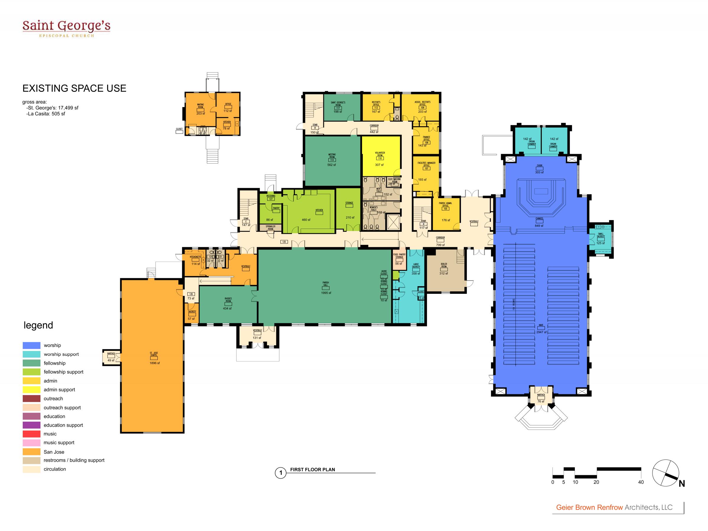 GBR was initially engaged for planning services to determine the best use for current space and to consider if another expansion was necessary. After evaluation of needs and budgets, it was determined to focus on renovation of the three main spaces: Nave, Parish Hall and Chapel. For sacred spaces, such as this, generations of families have attended worship, weddings, and baptisms, so preserving the architectural character of the spaces was a top priority.